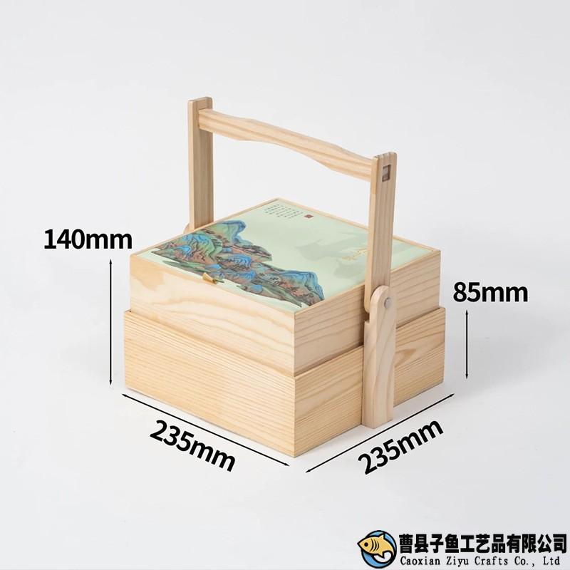 定做木制中秋月餅禮盒雙層提籃