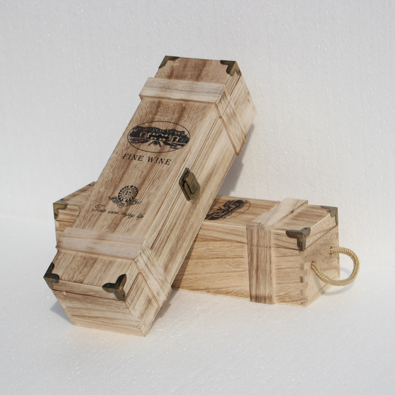 > 紅酒禮盒木頭盒子單支鐵包角復古